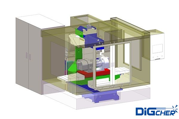 機(jī)床部分:使用BT40通用刀柄作為高壓水噴頭載體,配以自動刀庫換刀系統(tǒng)。高精度電腦數(shù)控分度盤提高加工精度和加工效率。